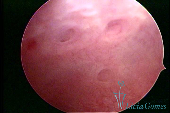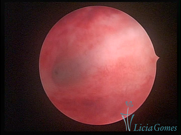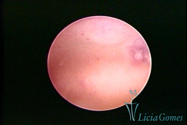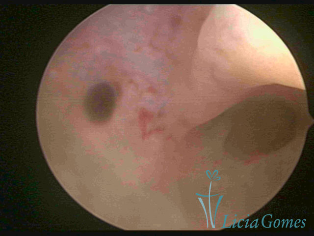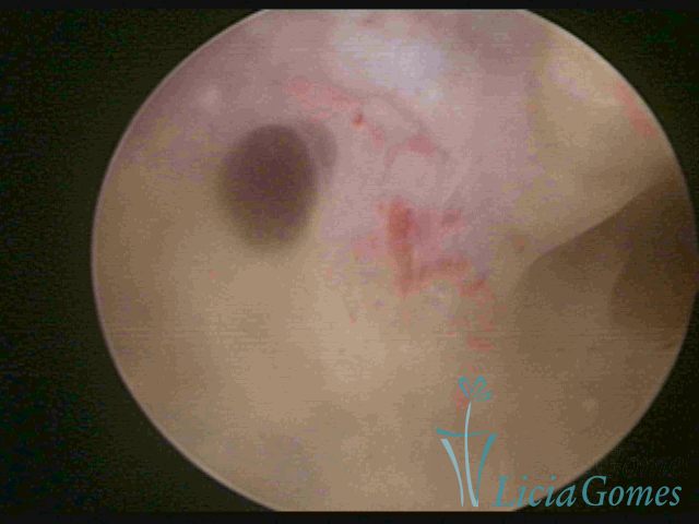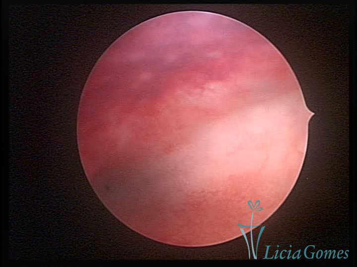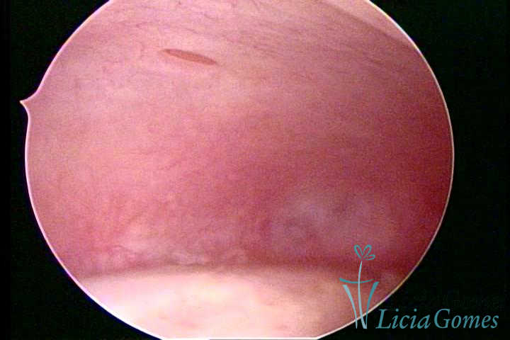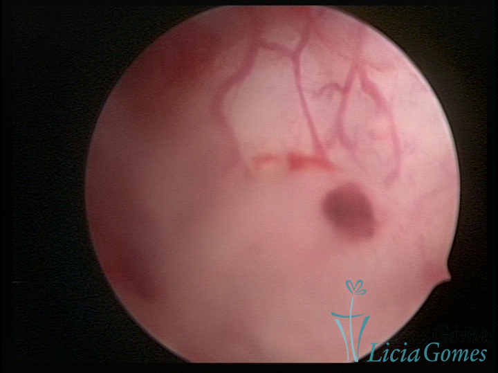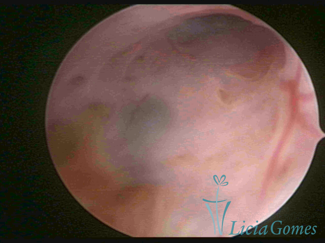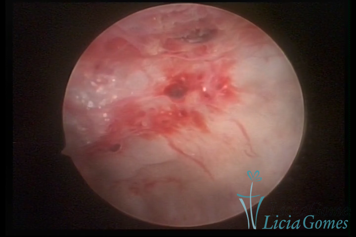 A vídeo-histeroscopia permite diagnosticar às lesões próximas às camadas miometriais superficiais, próximo ao endométrio visualizando lesões de coloração violácea, circunscritas, ou acastanhadas com conteúdo achocolatado.