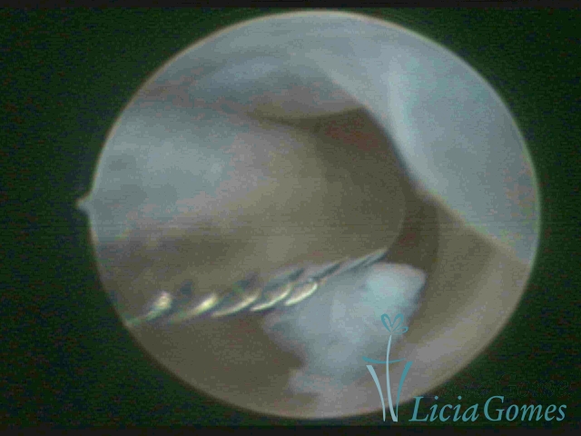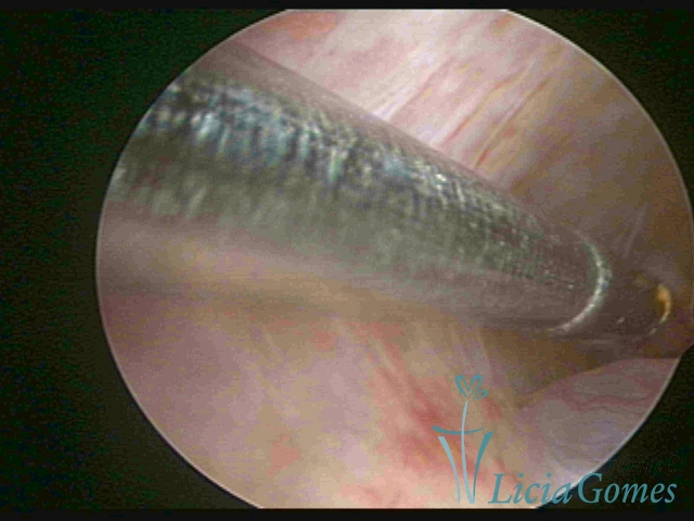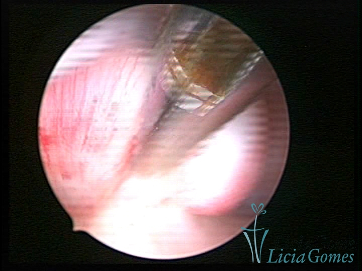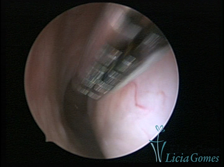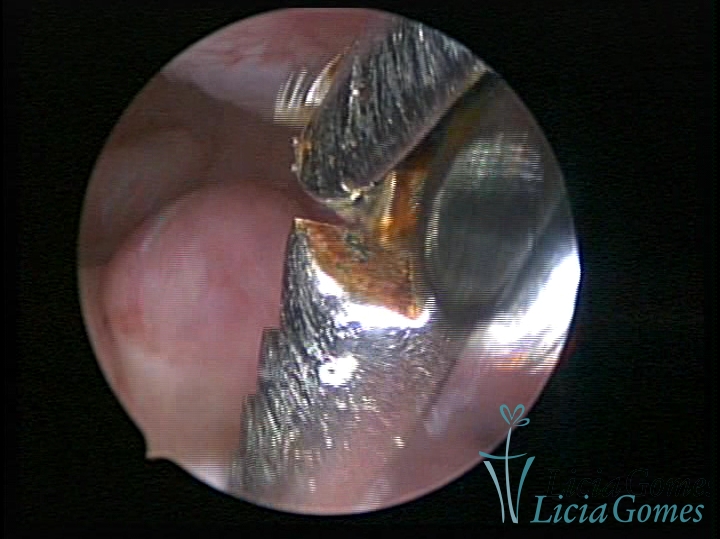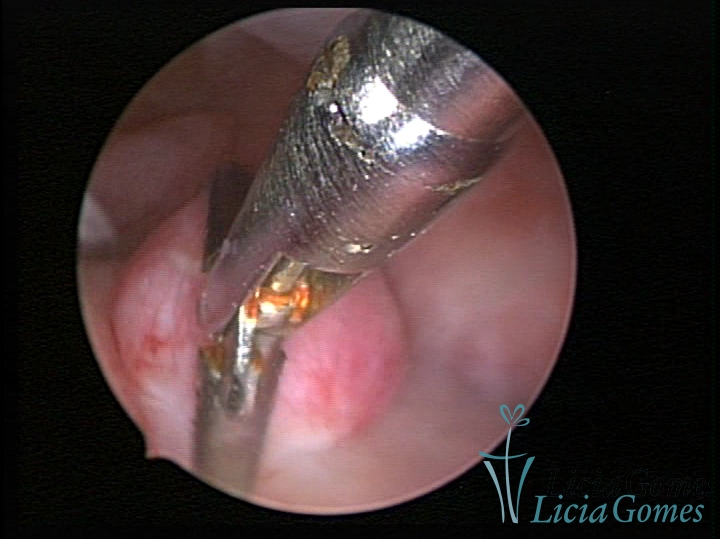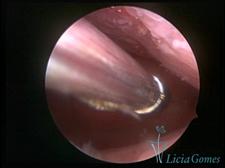 Procedimento realizado com Bettocchi®, usando a pinça como guia em canal cervical estenosado