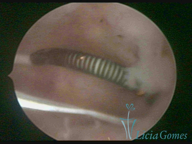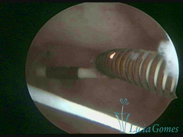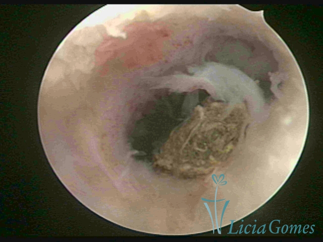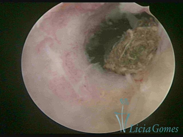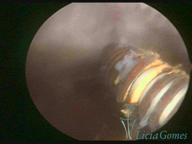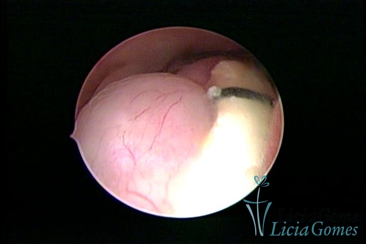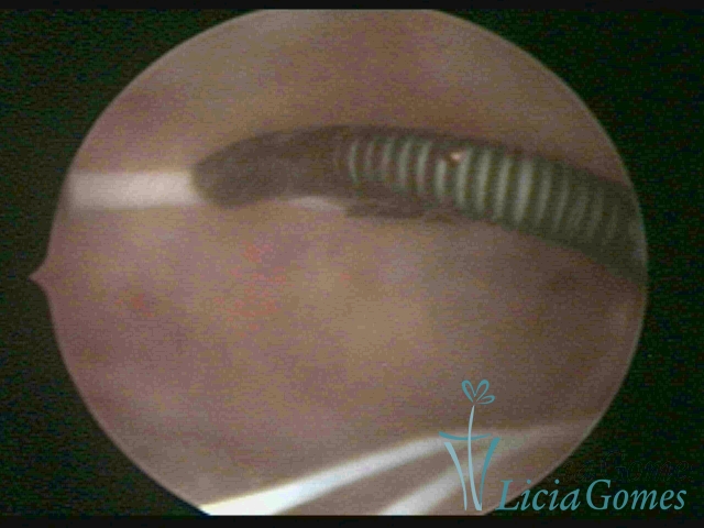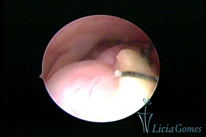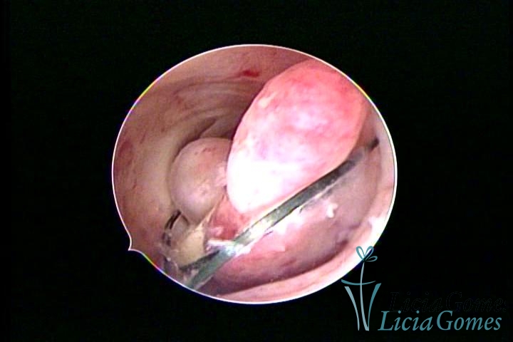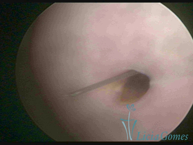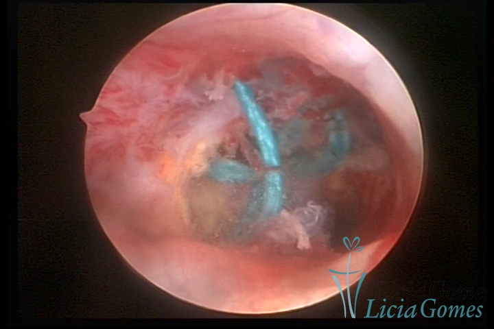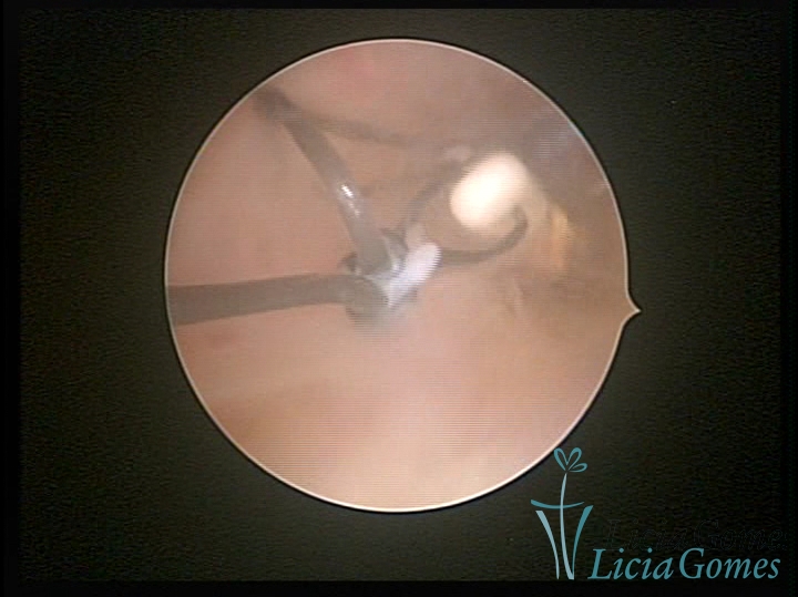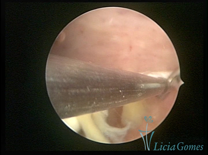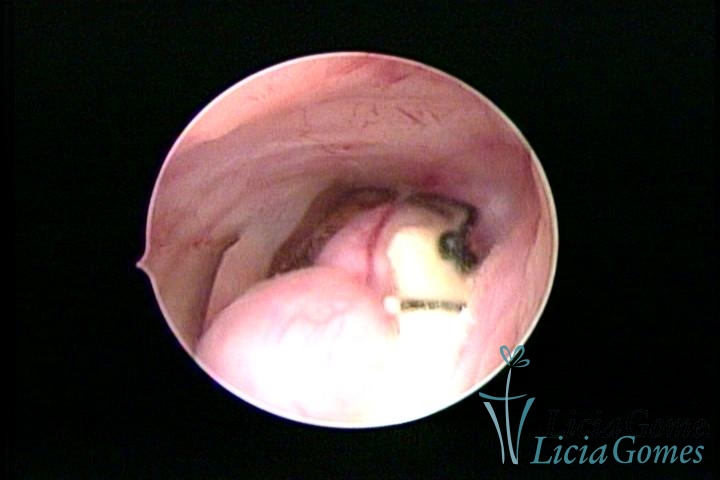 Cavidade com o Mirena®, sendo retirado sob visão direta