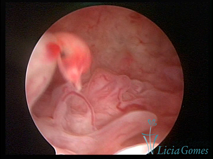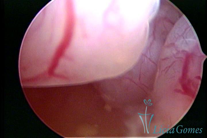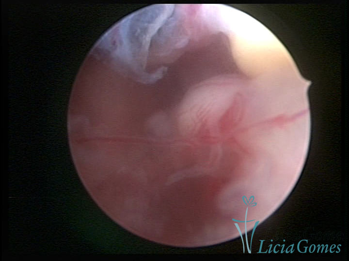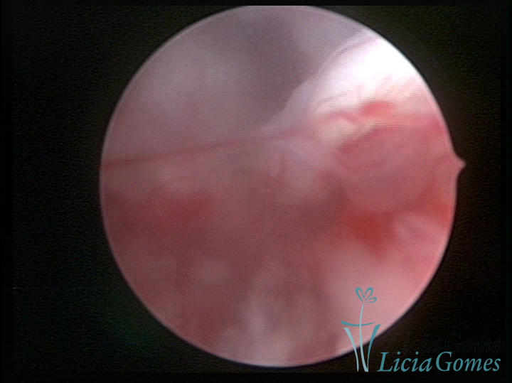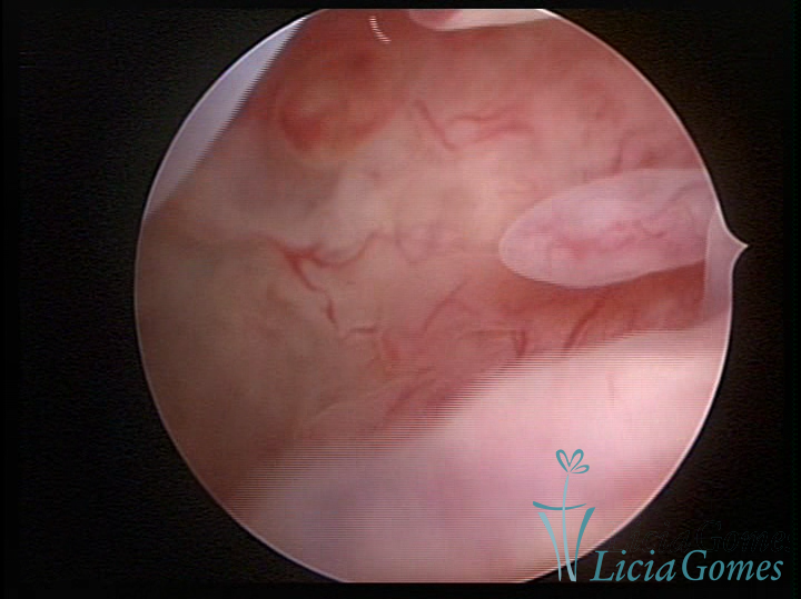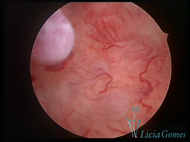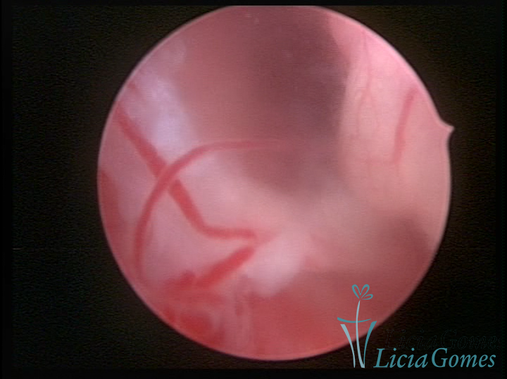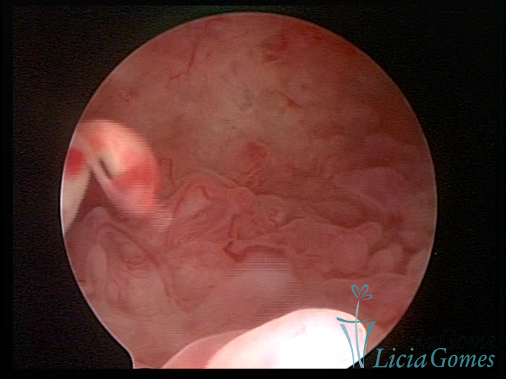 A histeroscopia permite analisar as características da superfície endometrial, não podendo avaliar a profundidade ou o grau de invasão miometrial.