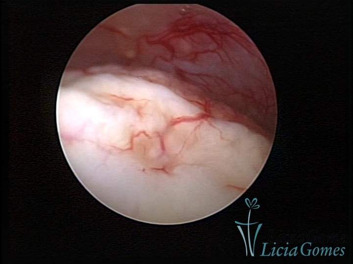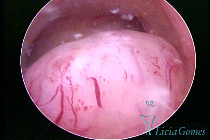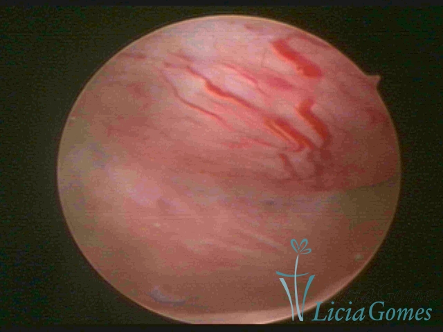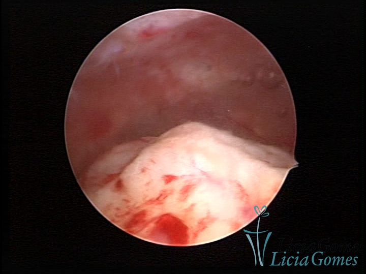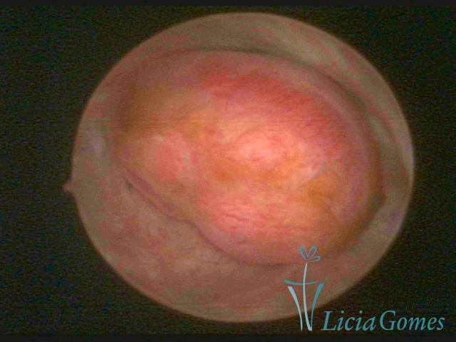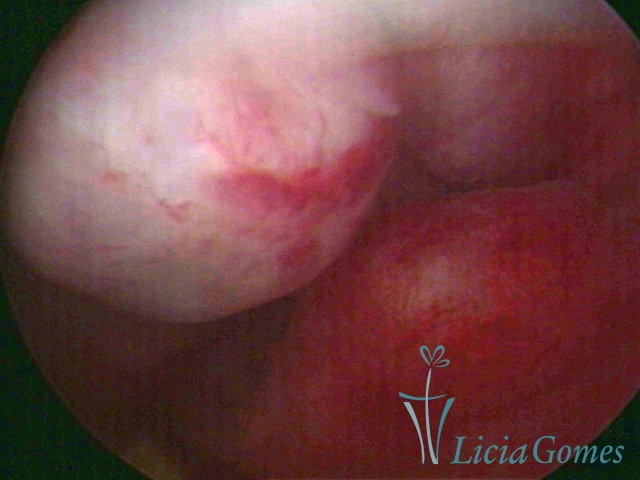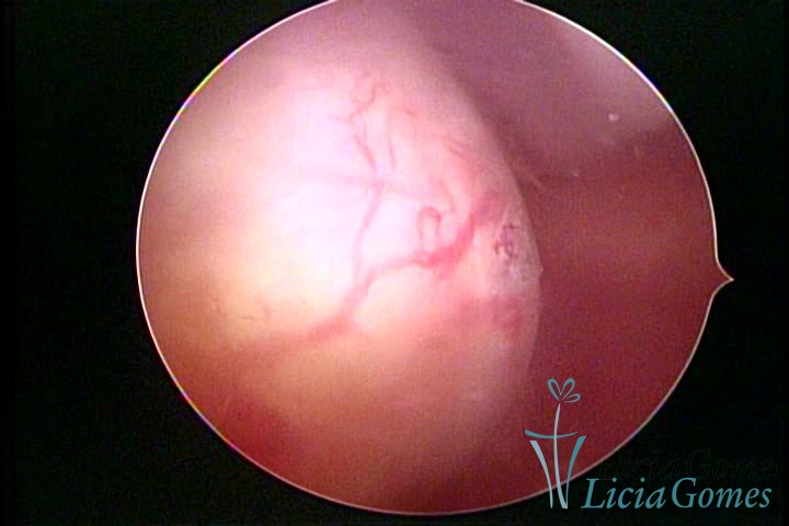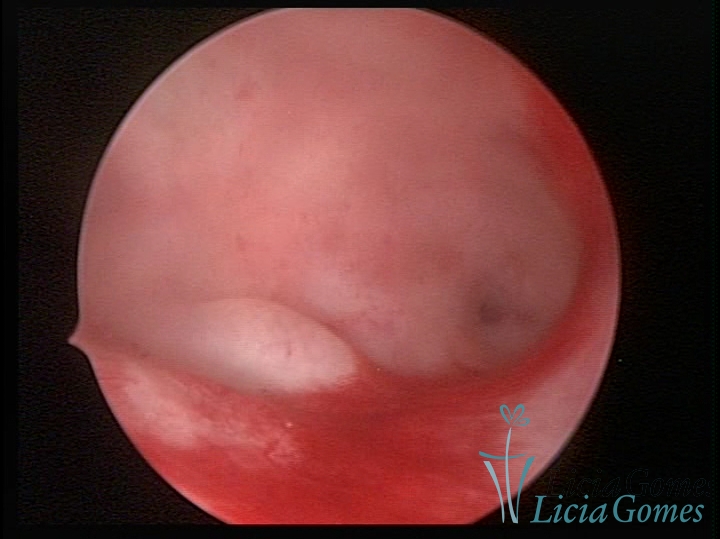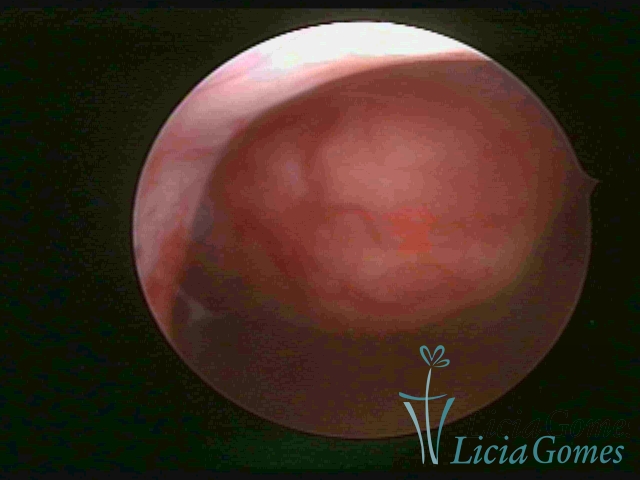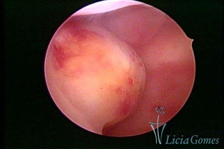 Myoma (leiomyoma, Scleroma, Fibroma, Fibromyoma, Fibroleiomyoma, Rhabdomyoma) is a benign tumor mainly constituted of smooth muscle cells associated with fibrous connective tissue in a variable number. Hysteroscopically, submucous and intramural myomas cause a bulge of the endometrial layer.