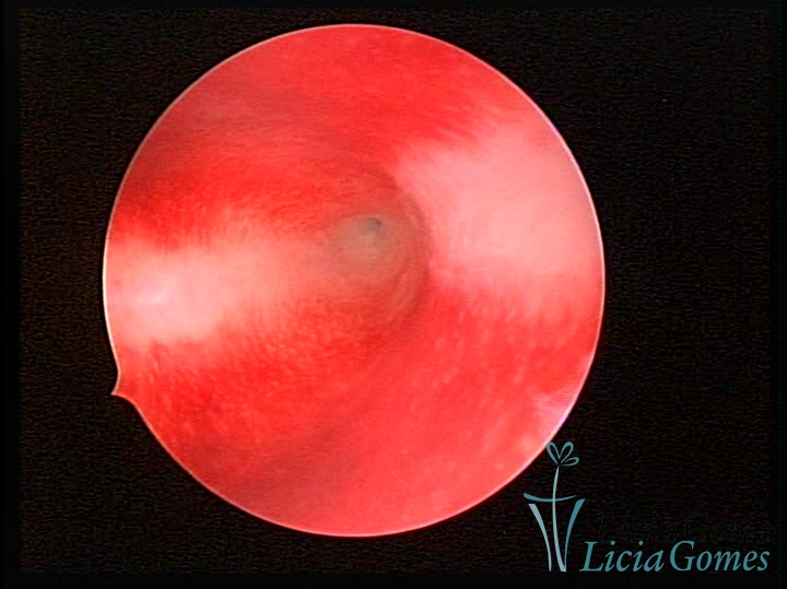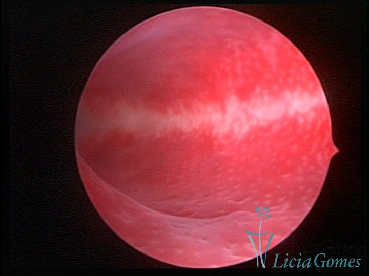 A superfície do endométrio pode exibir alterações como um pontilhado vermelho formando novelos vasculares, o endométrio liso e hiper-vascularizado, ou com áreas vermelhas de forma intensa, com limites precisos e pontilhados branco amarelados no seu interior dando um aspecto “CASCA DE MORANGO” e uma coloração amarela pálida das comissuras fúndicas e laterais, em contraste com o vermelho intenso das paredes.